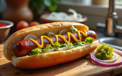 La première bouchée arrive presque avant d’avoir le temps d’y penser : le pain hot dog encore tiède qui se déchire sous les doigts, la saucisse américaine juteuse qui claque légèrement, la moutarde jaune qui chatouille le nez, le mélange...