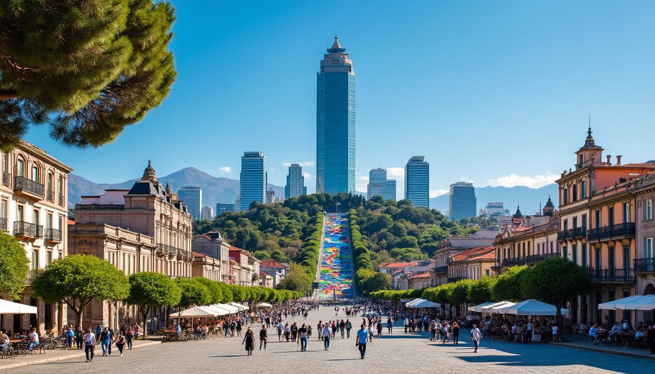 Imagine-toi sortir du métro à l’heure dorée, quand le soleil rase les façades et que les ombres s’allongent sur le pavé. Santiago bruine parfois en hiver, brûle en été, mais garde toujours cette lumière sèche typique du Chili central.
