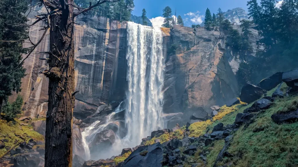 À l’entrée de la vallée, sa grâce silencieuse contraste avec les rugissements des géantes. Un passage rituel pour qui cherche l’âme poétique de Yosemite.