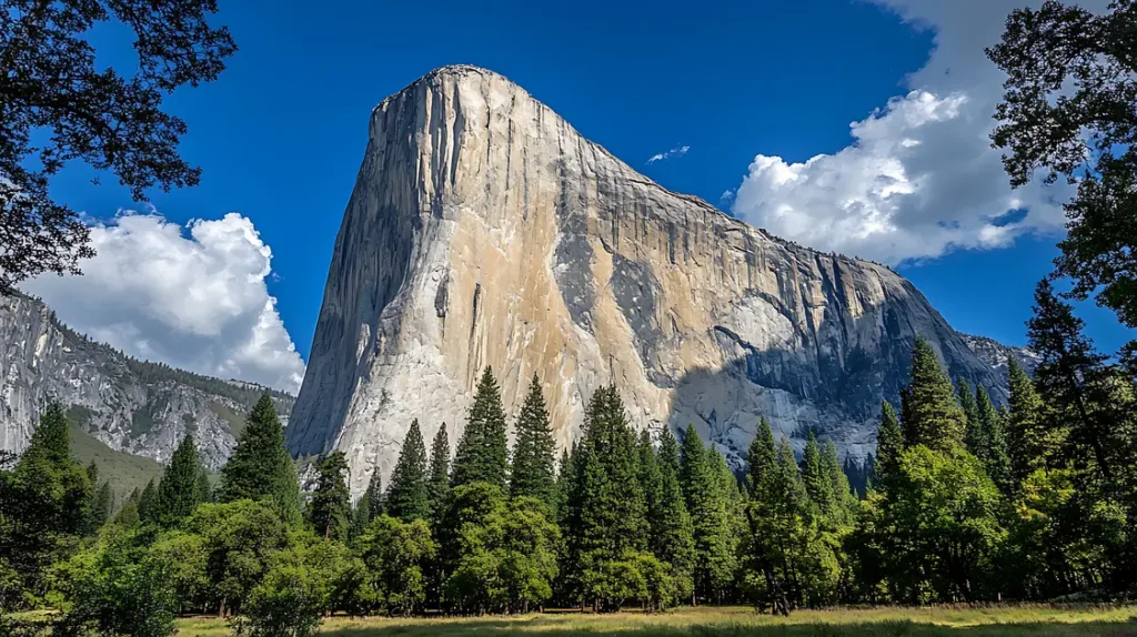 El Capitan domine de 914 mètres sa base, une paroi vertigineuse pour grimpeurs aguerris. Sa renommée s’écrit dans les exploits d’Alex Honnold, grimpant en solo les 1 000 mètres de la voie Freerider. Ici, les parois murmurant des défis humains.